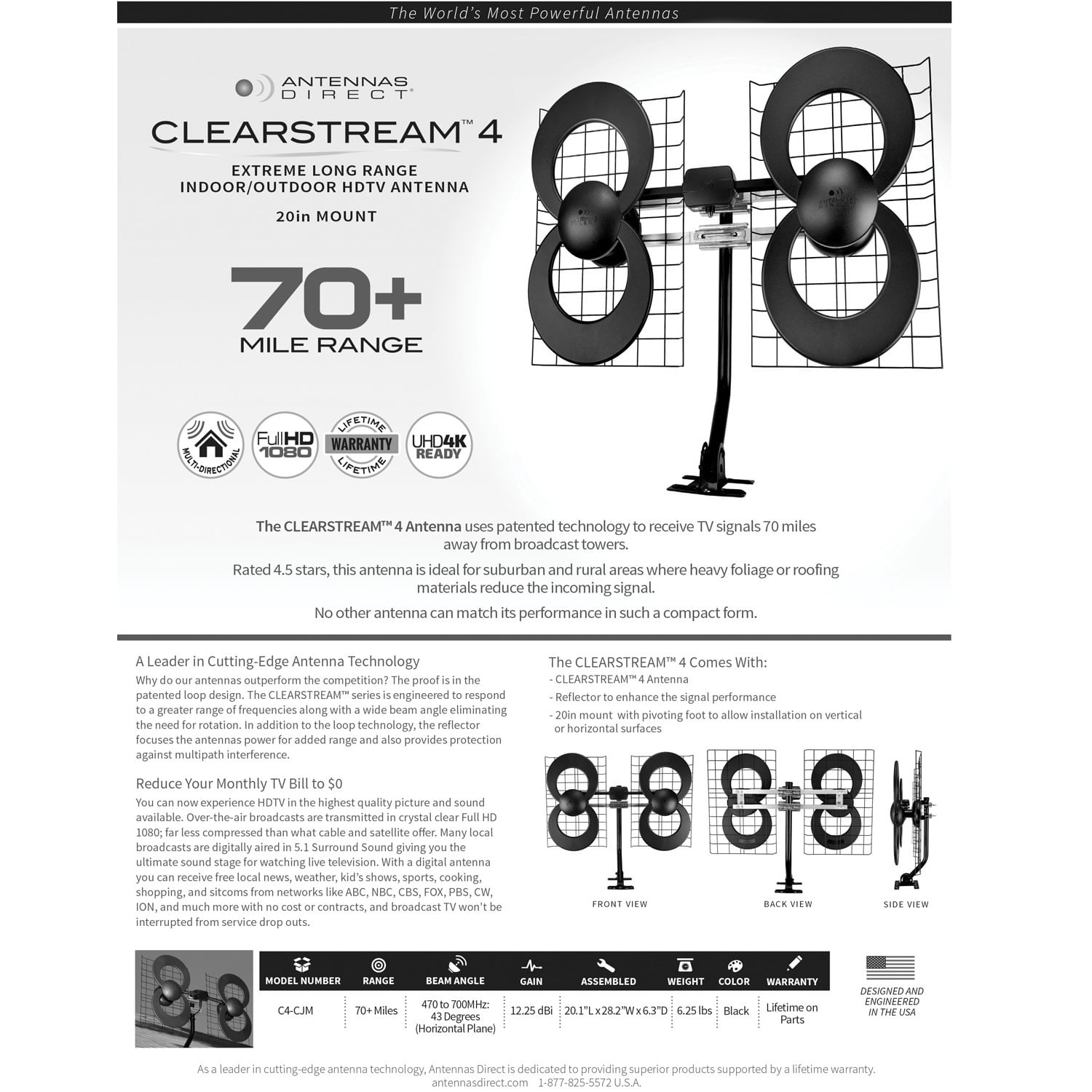 Antennas Direct C4-V-CJM ClearStream 4V Extreme Range Indoor/Outdoor HDTV Antenna 169.99$